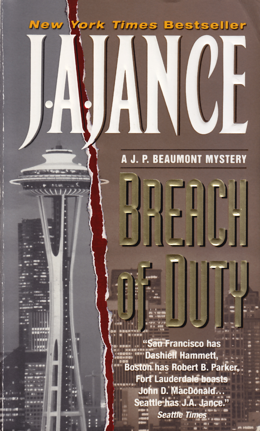 J.P. Beaumont Mysteries: Until Proven Guilty (1985), Injustice for All (1986), Trial by Fury (1986), Taking the Fifth (1987), Improbable Cause (1988), A More Perfect Union (1988), Dismissed With Prejudice (1989), Minor in Possession (1990), Payment in Kind (1991), Without Due Process (1992), Failure to Appear (1993), Lying in Wait (1994) Name Withheld (1996), Breach of Duty (1999), Birds of Prey (2001), Partner in Crime (2002), Long Time Gone (2005), Justice Denied (2007), Fire and Ice (2009), Betrayal of Trust (2011), Ring in the Dead (2013), Second Watch (2013)